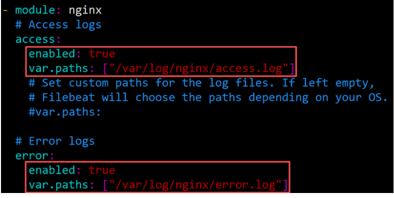 Enabled nginx指定 filebeat 的 nginx 模块采集 nginx 服务的日志路径