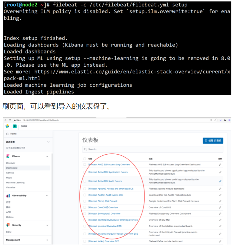 [root@node2 ~]# systemctl restart filebeat导入仪表盘,导入需要等待片刻