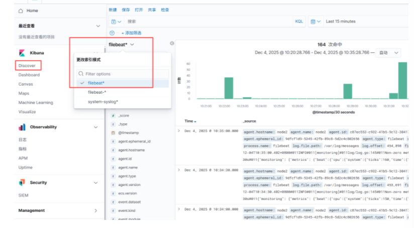 可以看到新增了一个以 filebeat-7.8.1 开头的索引,这就代表 filesbeat 和 es 能够正常通信了。