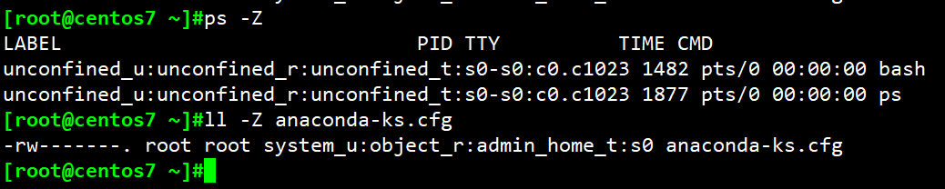 user:role:type:sensitivity:category实际上下文:存放在文件系统中,ls -Z ; ps -Z