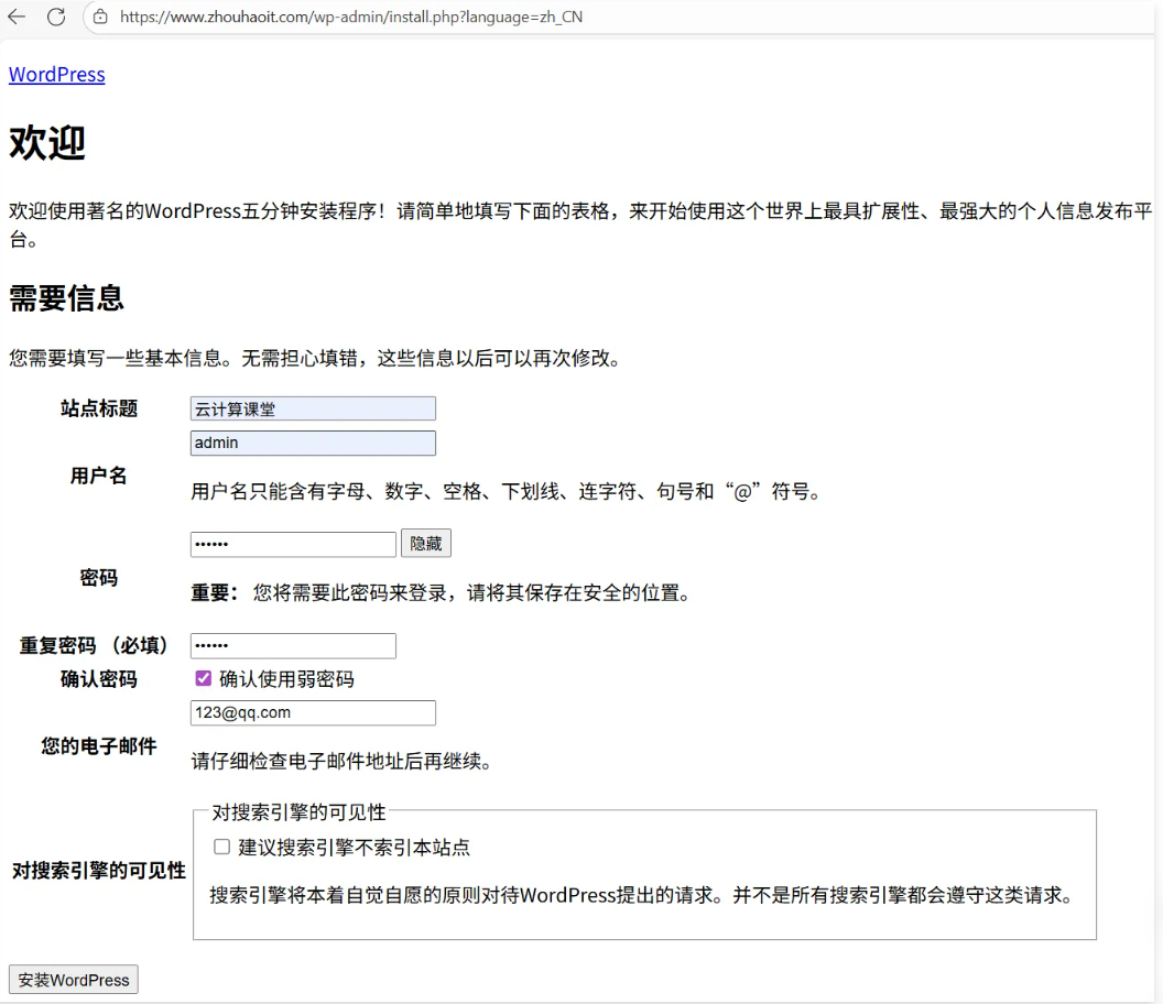 chown -R nginx.nginx /opt/wordpress