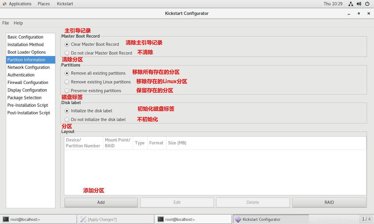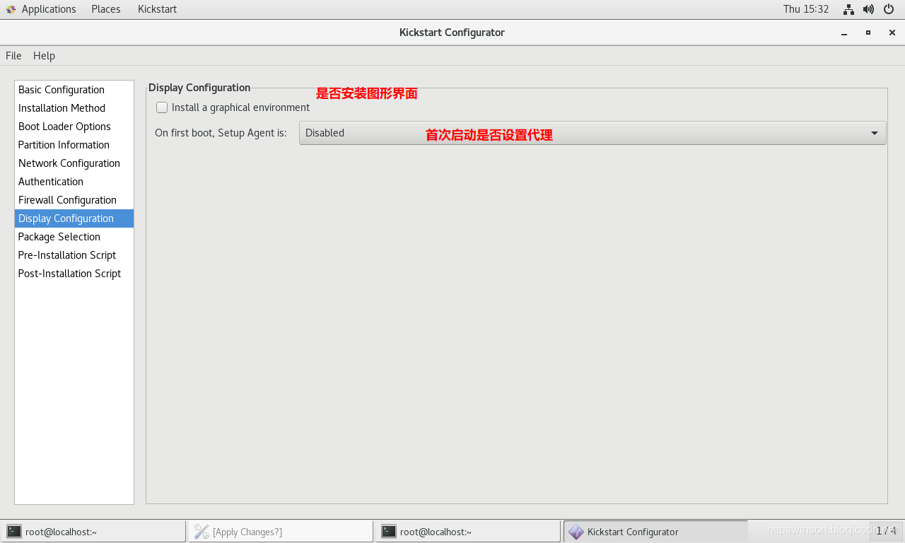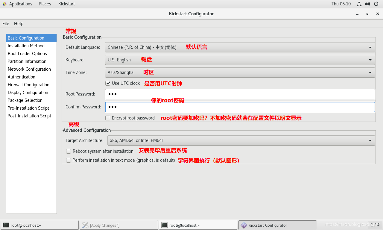 实现自动安装前,需要制作对应的安装应答文件,称为kickstart文件,用于保存安装过程需要指定的选项。