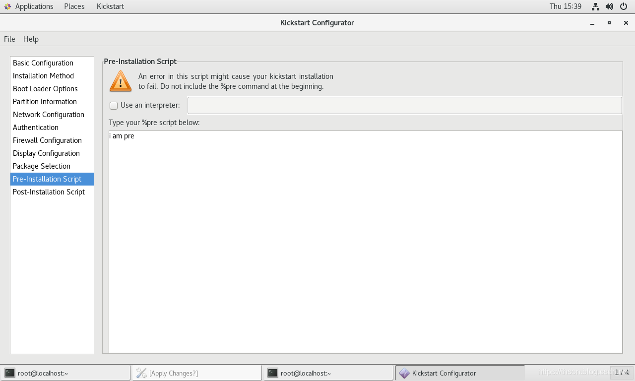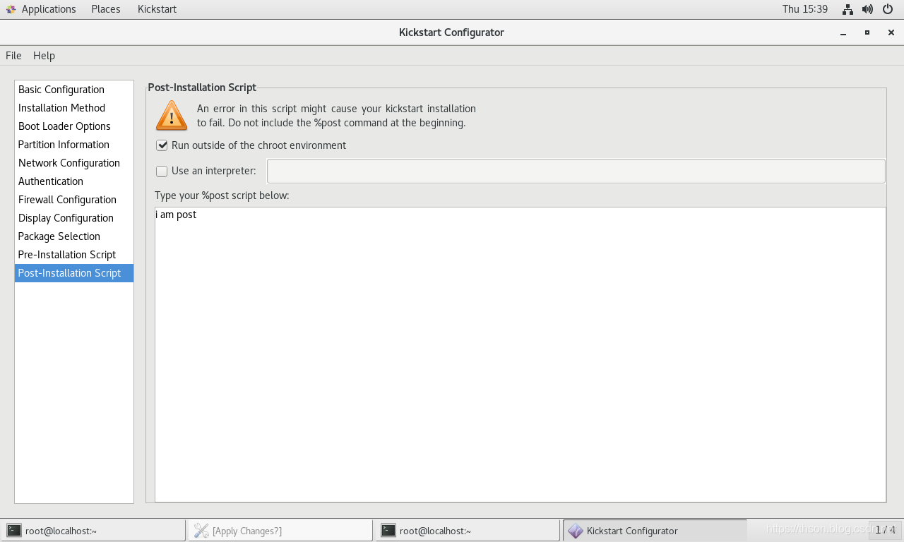 %end脚本段:指定安装系统前后需要执行脚本或者命令