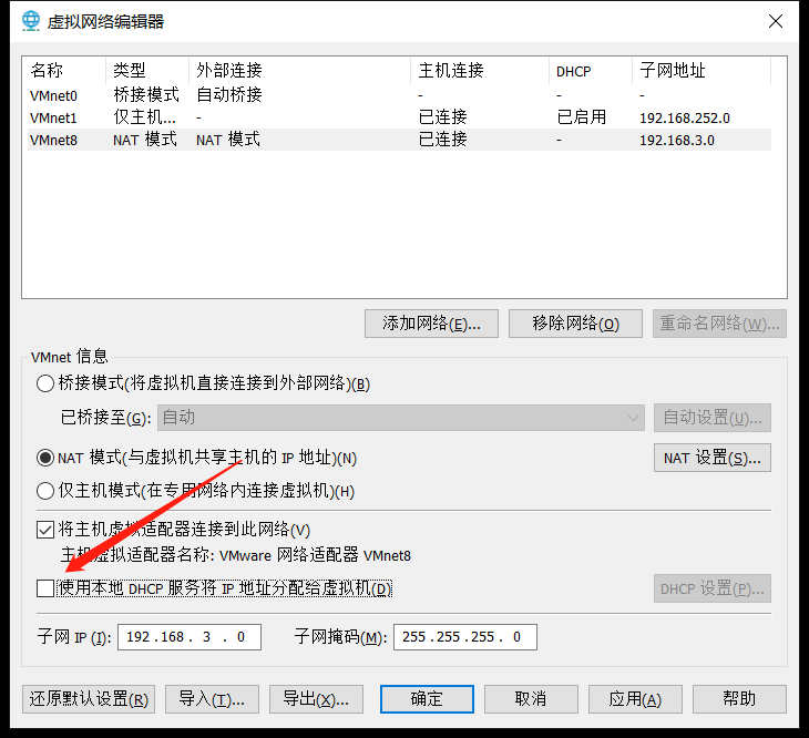 关闭PXE服务端的防火墙 和 selinux,设置静态获取地址,关闭Vmware软件中的DHCP服务,基于NAT模式.