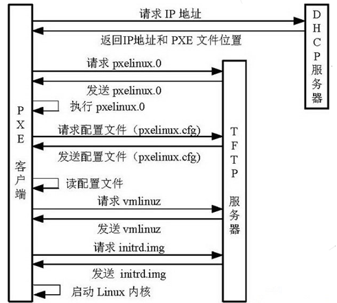 Client根据启动菜单配置文件里的信息,向TFTP发送Linux内核和initrd文件请求信息,TFTP接收到消息之后将内核和initrd文件发送给Client